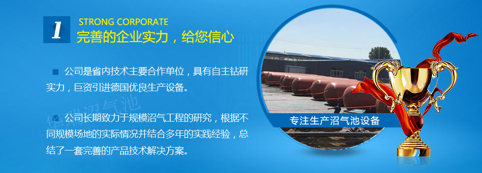 生產設備和生產技術人員,技術水平高,創新能力強的沼氣池設計研發隊伍,使公司不斷發展壯氣浮機大并連年取得新突破。我們時水囊刻謹記以誠信之心取信于社會,照現代企業制度的要求提高沼氣設備經營決策水平管理,秉承以仁為本以質取勝的